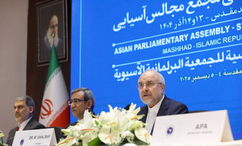 به گزارش ازتاب رسانه ، دکتر محمدباقر قالیباف رئیس مجلس شورای اسلامی در نشست کمیته دائمی امور سیاسی مجمع مجالس آسیایی(APA) که صبح امروز (پنجشنبه، ۱۳ آذر ماه ۱۴۰۴) به میزبانی جمهوری اسلامی ایران در مشهد مقدس برگزار شد، طی سخنرانی خود به بین‌المللی شدن دبیرخانه و تقویت دبیرخانه‌ APA تأکید کرد تا بتواند صدای ‌متحد آسیا را به‌گوش مجامع بین‌المللی برساند.